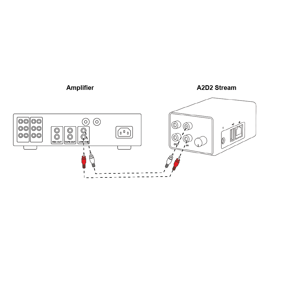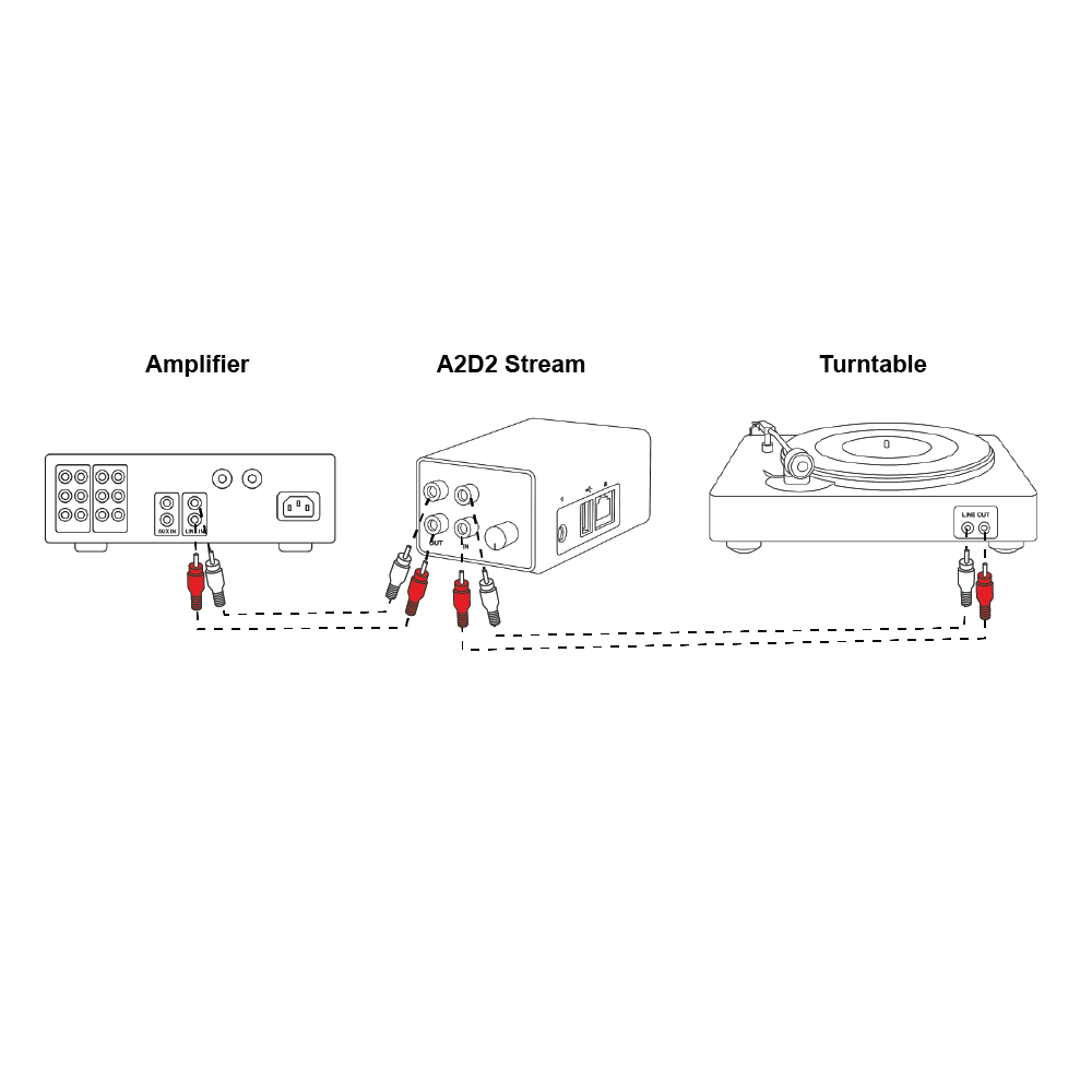 If you're connecting A2D2 Stream to a turntable with a line-out - most entry level turntables operate this way - here's how to connect the devices: